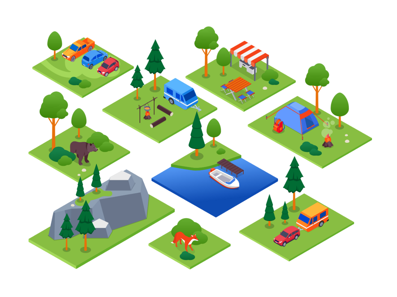 - Variety of Locations from forest, lakeside, and mountain campsites